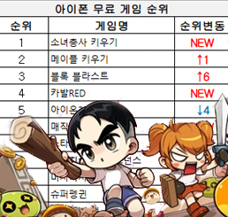 이번주 아이폰 무료 게임 순위에서는 손쉬운 성장을 표방하는 방치형 장르의 게임이 인기를 보였다.