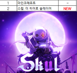 유료 게임 게임 순위에서는 네오위즈의 로그라이크 액션 게임 '스컬: 더 히어로 슬레이어'가 새롭게 차트에 오르며 2위를 기록했다.