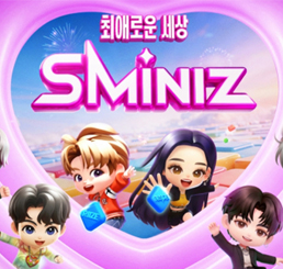 카카오게임즈는 SM엔터테인먼트의 IP 기반 신작 '슴미니즈(SMiniz)'의 글로벌 정식 서비스를 오는 25일 시작한다.